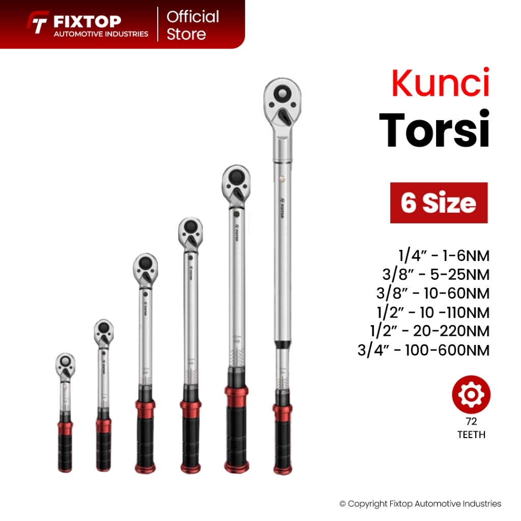 FIXTOP Kunci Momen Torsi 1-600 Nm Torque Wrench 1/4" 1/2" 3/8" 3/4" Inch Sepeda Motor Mobil Truk