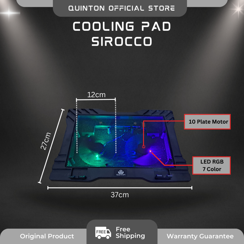 QUINTON Kipas Laptop Cooling Pad laptop Sirocco 12-17inch 2 fan RGB