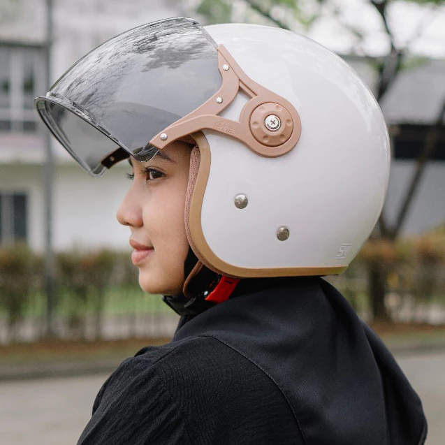 Helm Bogo Cewek Estetik Bipplast Fantasy V2 Half Face Pilot Hijab Friendly Wanita SNI Cepol Terbaru