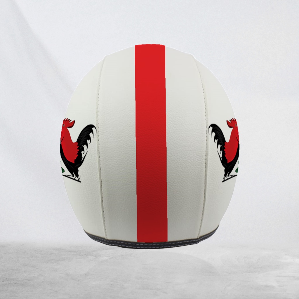 Helm Bogo Retro Kulit Mangkok Ayam Jago Putih Merah Unik Free Tambah Nama
