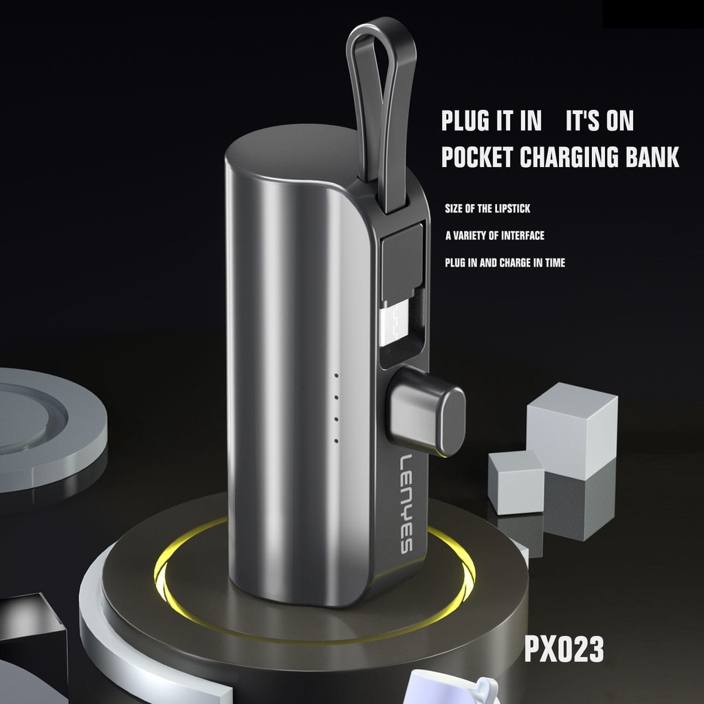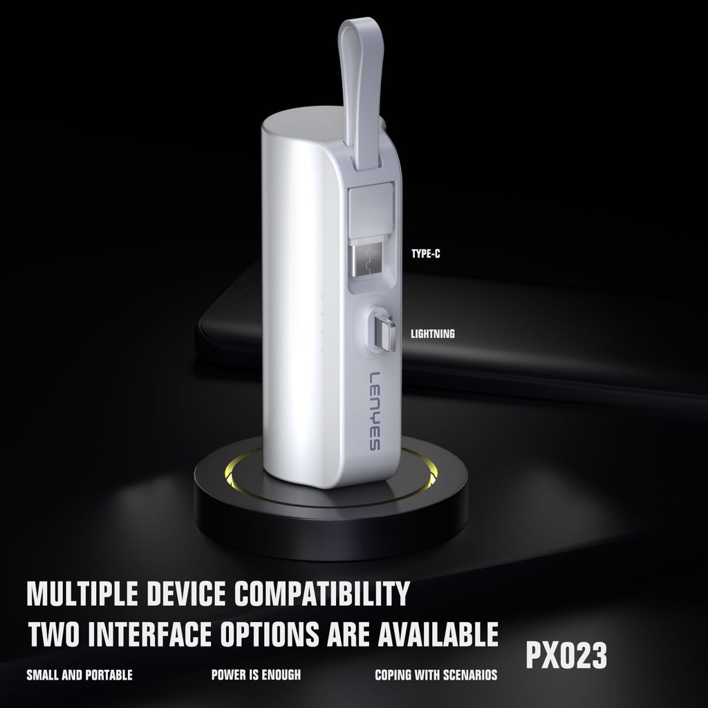 LENYES PX023 5000mAh Mini Powerbank 2 Conector Options With Stand Of Power Bank