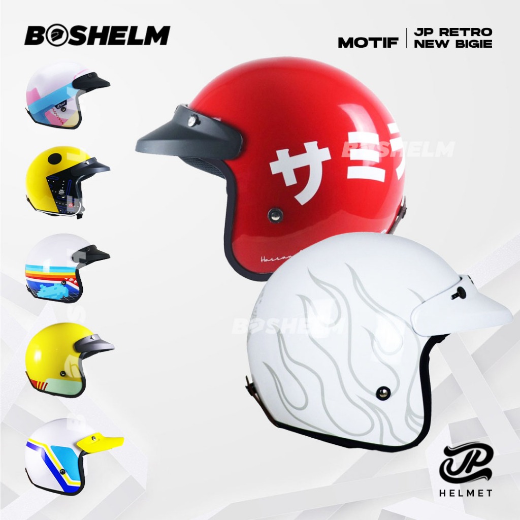 Helm JP Retro New Bigie NOMADENS BROKEN WHITE Helm Half Face SNI