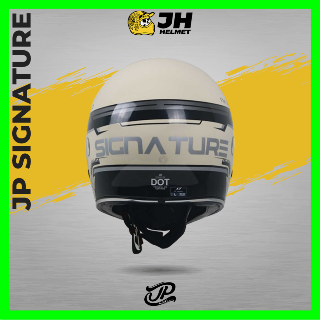 Helm JP Signature Motif SG11 Trapper White Cream Glossy | Helm Cakil | Helm Retro | Helm Full Face | Jual Helm