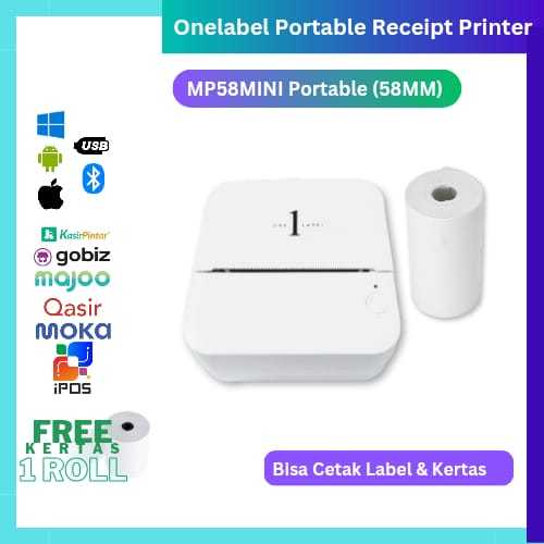 ONELABEL Printer Thermal Bluetooth 58MM PORTABLE THERMAL BATERAI KASIR Pocket Mini Printer Bluetooth 58MM HIGH QUALITY