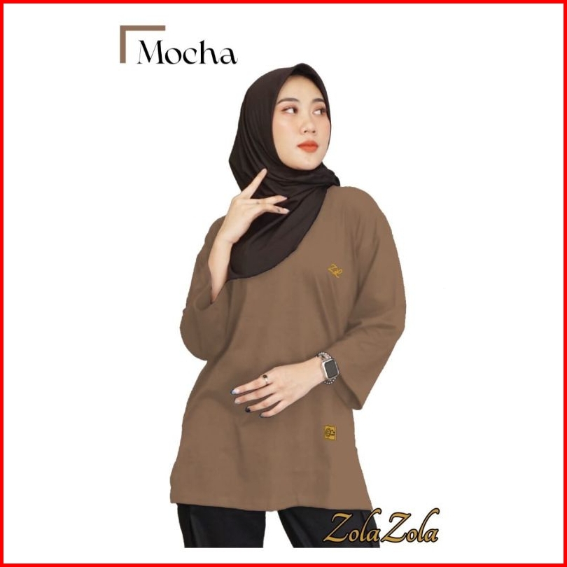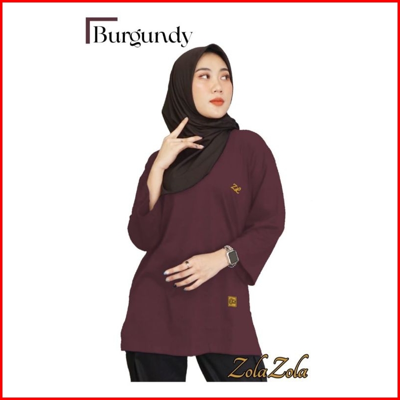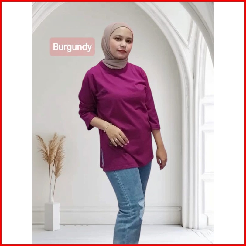 Kaos Oversize Wanita Semi Tunik Lengan 7 8 Adem Nyaman Bahan Katun Combed 24s