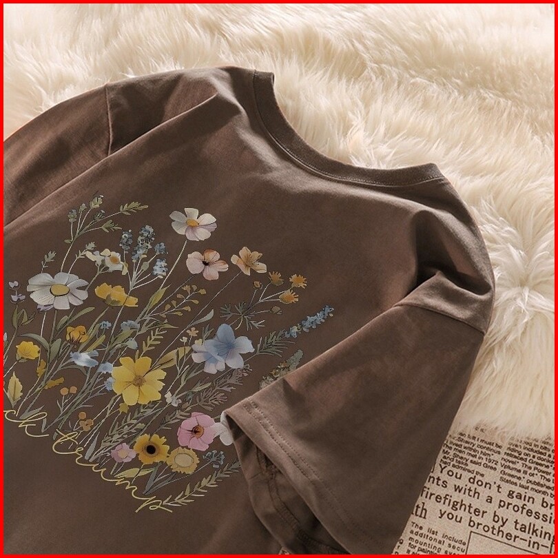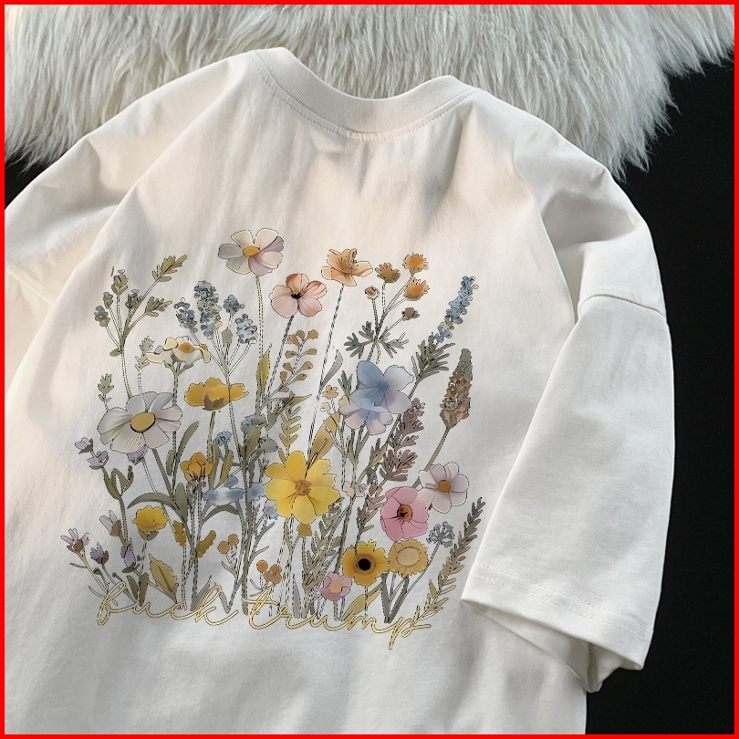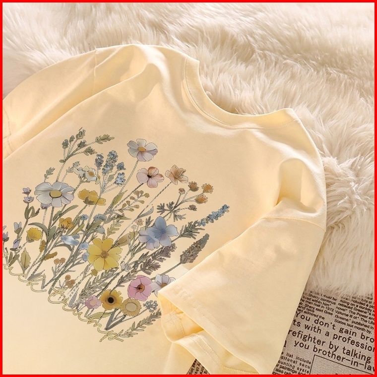 Quiss Atasan Kaos Wanita Oversize Lengan Panjang Korean Style Motif Bunga Baju Kaos Polos Cotton Combed Premium Terbaru