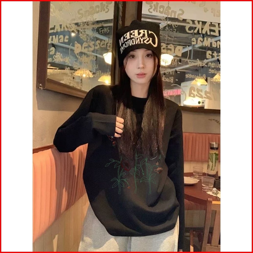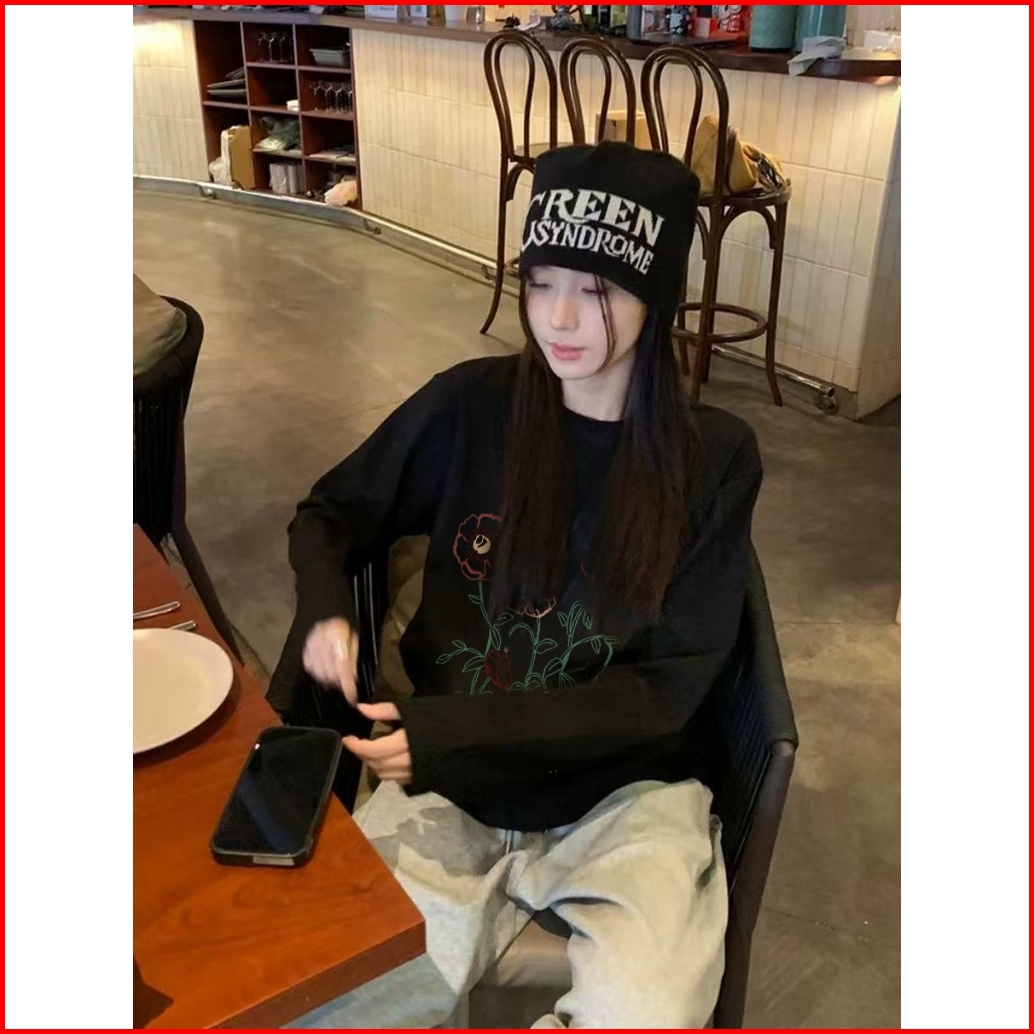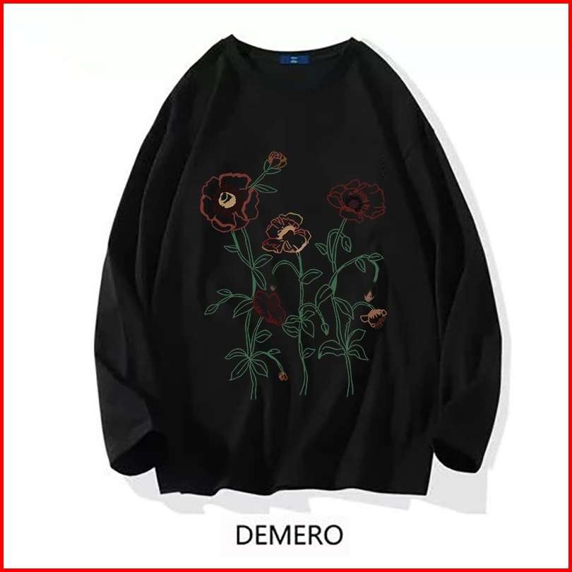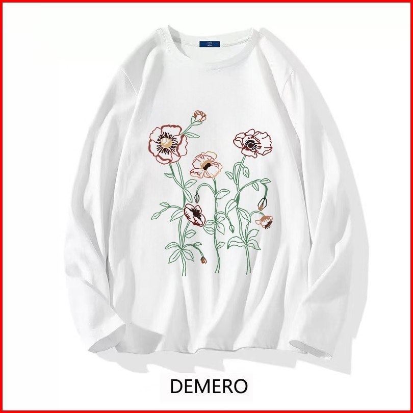Demero Atasan Kaos Wanita Oversize Lengan Panjang Korean Style Cetak Bunga Baju Kaos Polos Cotton Combed Premium Terbaru