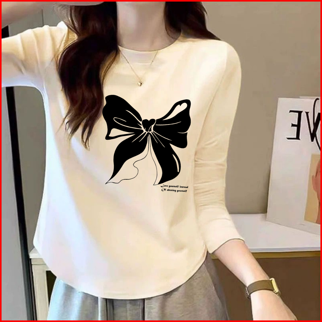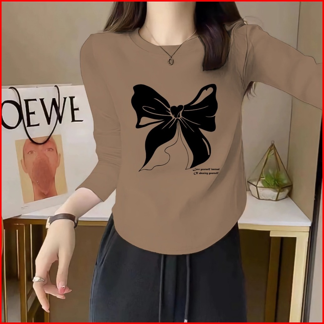 Baju Oblong Wanita Lengan Panjang Bahan Spandek Distro Printing Premiun Atasan Baju Kasual T-shirt