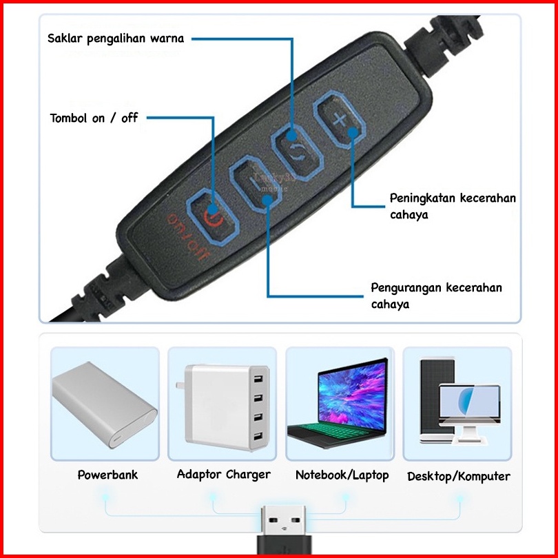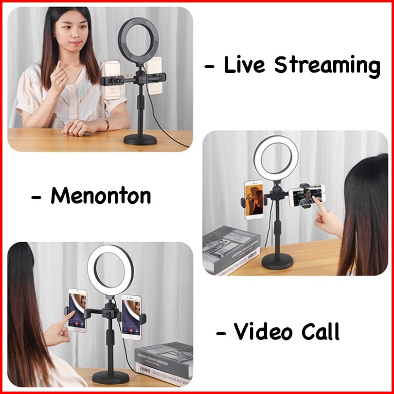 Ring Light 16cm Desktop Stand Single Double Triple Usb Mode Dual 360 Lipat Folding Bracket Selfie Streaming Tripod Hp