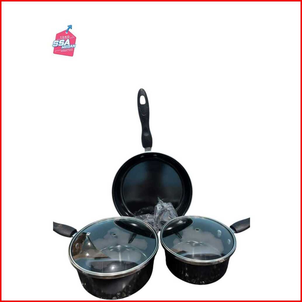 Panci Set 3in1 Anti Lengket Tutup Kaca Serbaguna Set Panci Masak 5 Pcs Dapur Modern P800-16