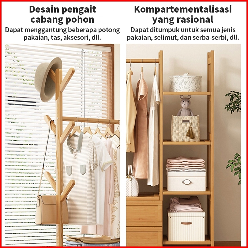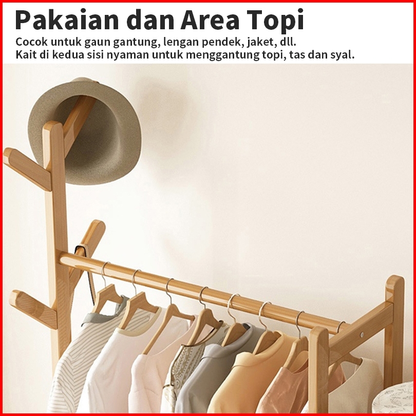 Kosistar-rak Gantungan Baju Serbaguna Stand Hanger Kayu Rak Baju Estetik Minimalis Berdiri Gantungan Baju