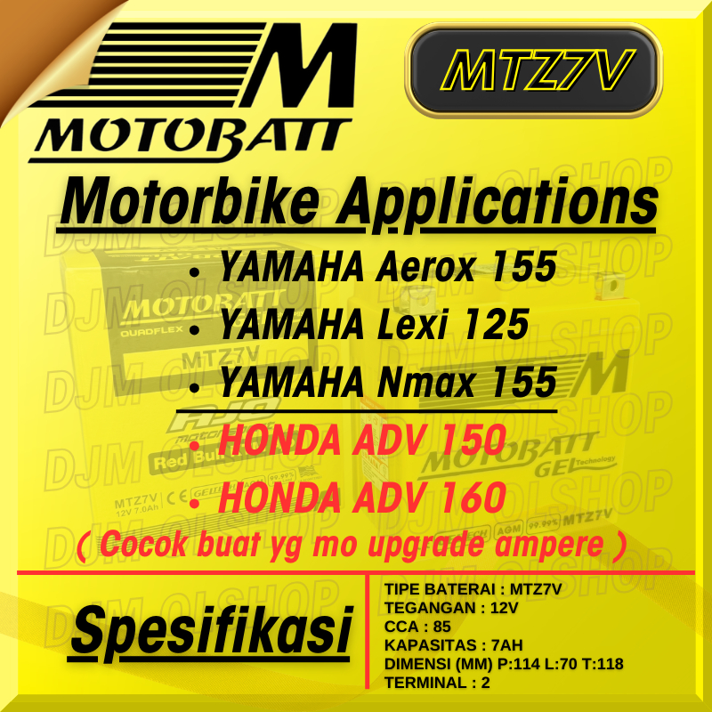 Aki Kering Motor Nmax Battery N-MAX 155 Aerox 155 Lexi 125 Accu Motobatt Gel MTZ7V 7Ah Aki Gel Gs Astra Original Sni