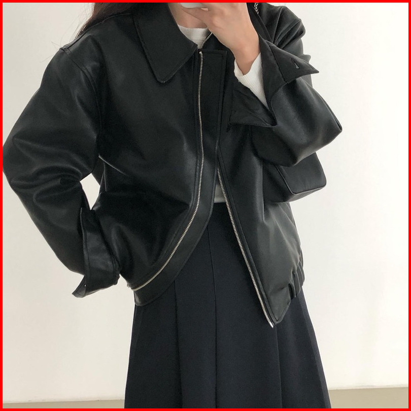 Jacket Kulit Cewe Kerah Karet Classic Style Jaket Kulit Cewe Keren Casual Jaket Semi Kulit Wanita Terbaru