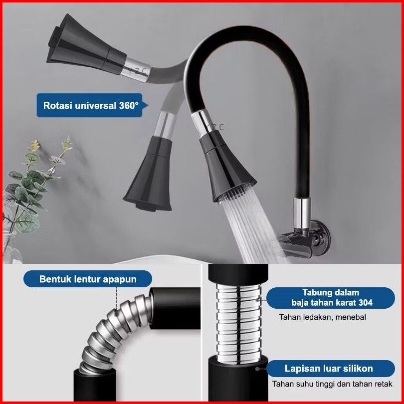 Sus304 Kran Angsa Fleksibel Kran Cuci Piring Hitam Kran Cuci Piring Dinding Anti Karat Promo Harga Agen Penyesuaian Air