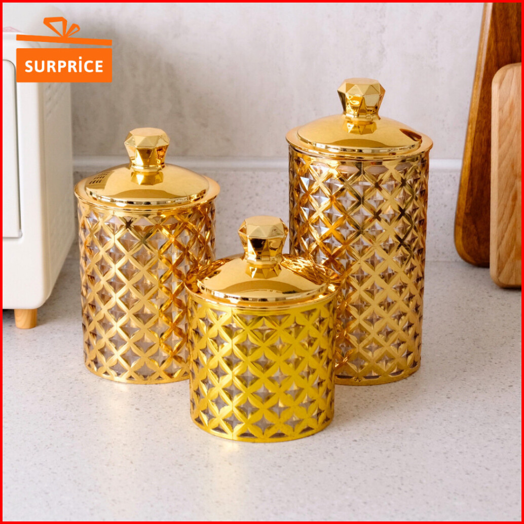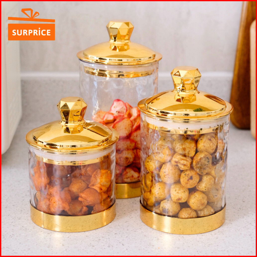 Surprice Tori Set Toples 3pcs Storage Container Transparan Jar Toples Akrilik Penyimpanan Kue Toples Penyimpanan Makanan
