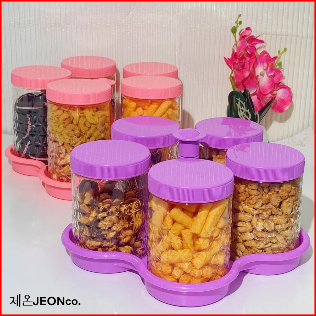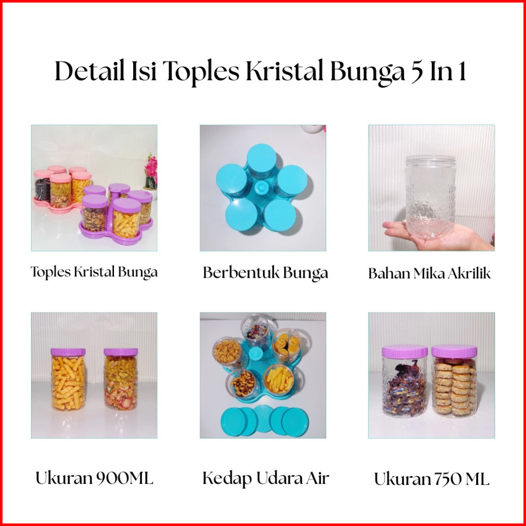Toples Bunga Kristal Calista Toples 5 Set Nampan Toples Kue Lebaran 5in1 - Hampers Kado Food Grade Polypropylene Pp