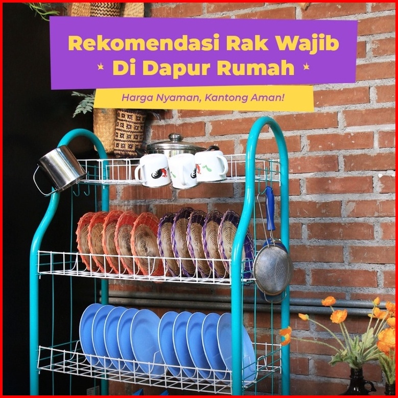 R-04 Melody Biru Hijau Rak Piring Rak Dapur Susun 4