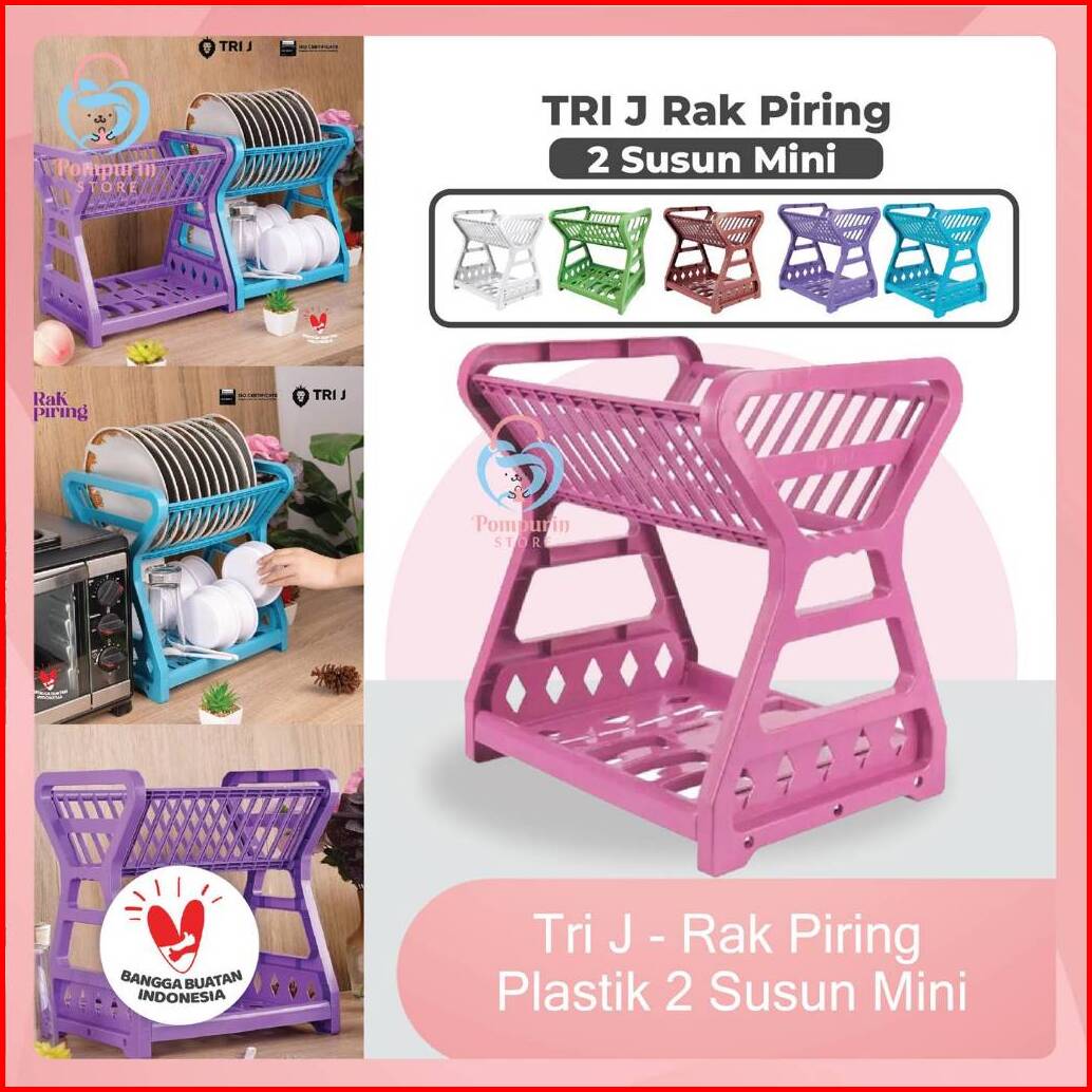 Tri J - Rak Piring Plastik 2 Susun Mini - Wadah Piring Gelas Alat Makan
