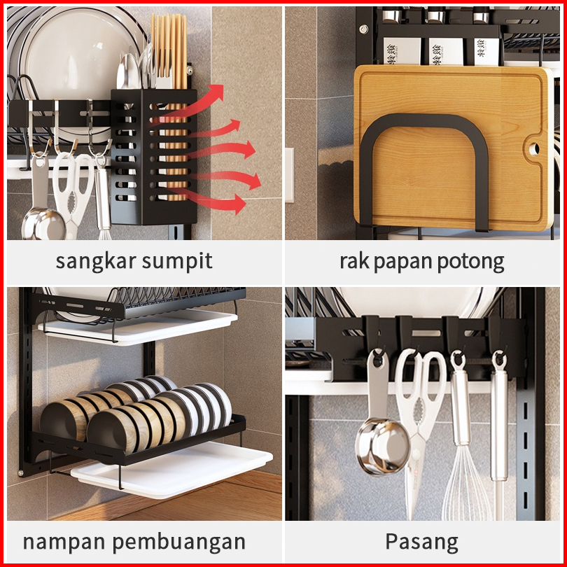 Rak Piring Stainles Steel Gantung Dinding Rak Piring Anti Karat Rak Penyimpanan Mangkuk