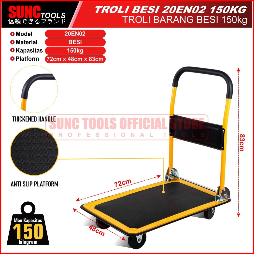 Sunc Tools Troli Barang Platform Hand Truck Tolley Trolli Besi 150kg