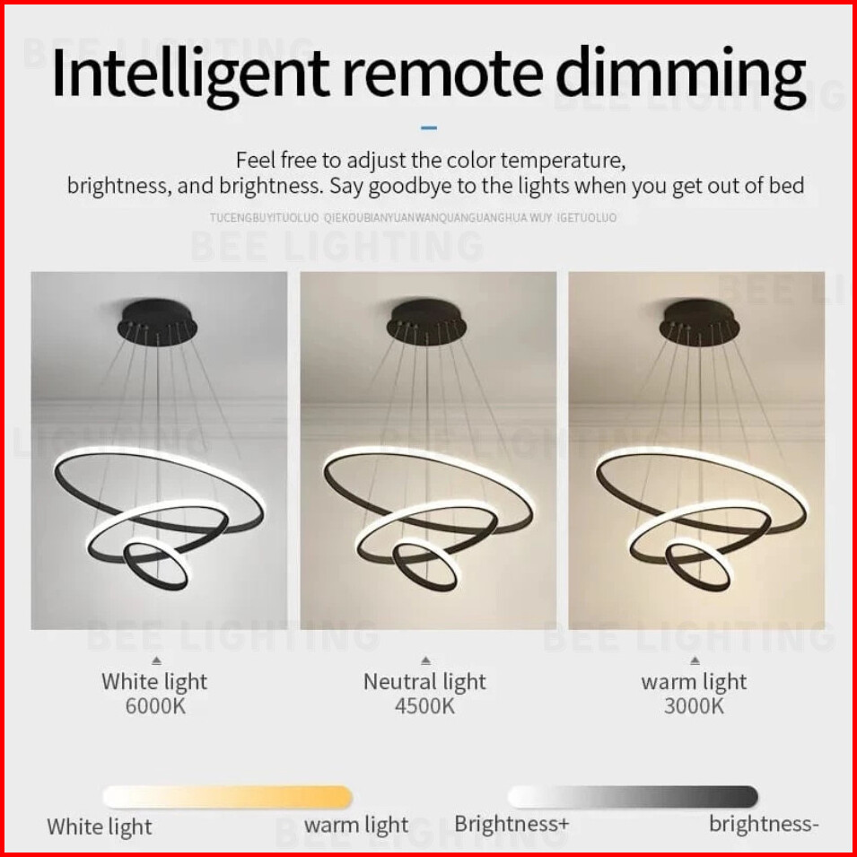 Bee Lighting Garansi 1 Tahun Lampu Gantung Minimalis Led 3 Ring Modern Ruang Tamu Lampu Gantung 3 Warna Remote Lampu Rua