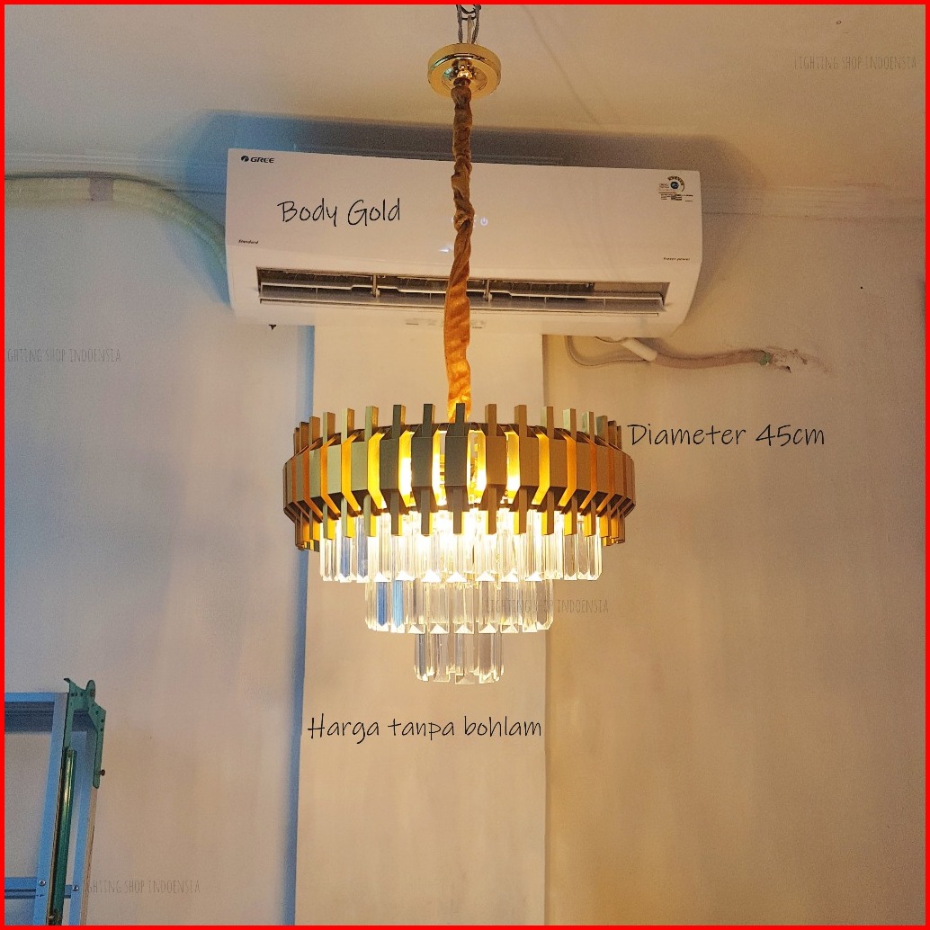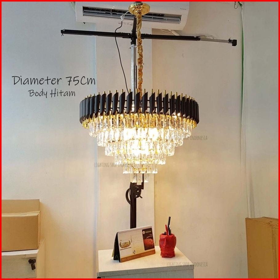Lampu Gantung Kristal Bulat Hitam 45cm 3susun Ruang Tamu Modern 55cm 75cm 95cm