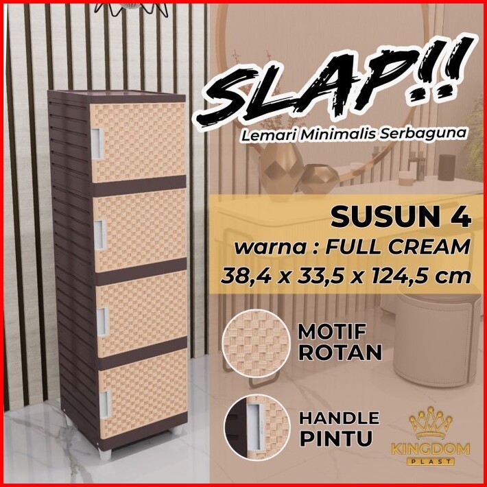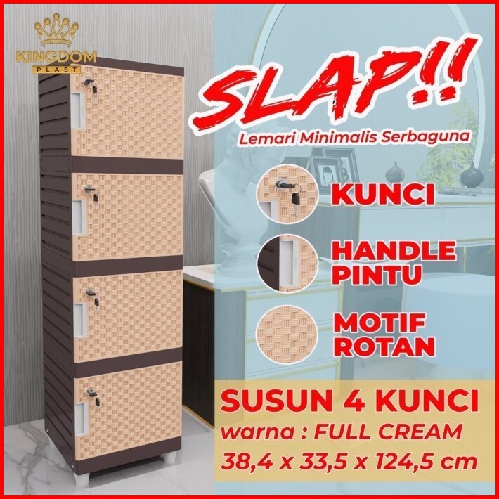 Lemari Plastik 4 Susun Kingdom Slap Full Krem Rak Serbaguna Tanpa Kunci Ada Kunci