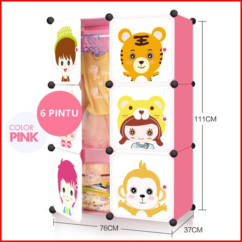Lemari Pakaian Plastik Rak Serbaguna Susun Plastik Lemari Baju Anak 6 Pintu Kotak Susun