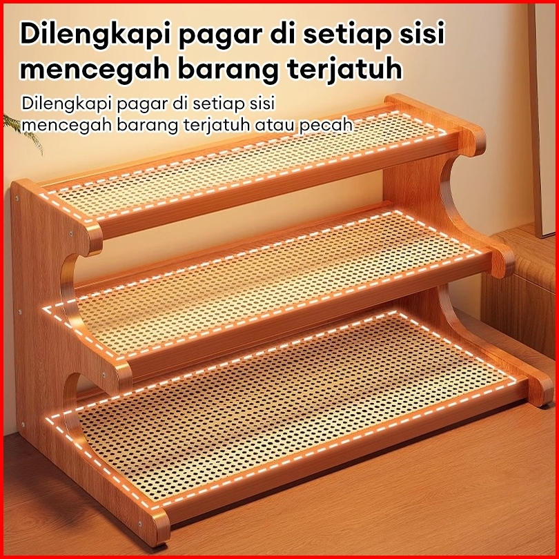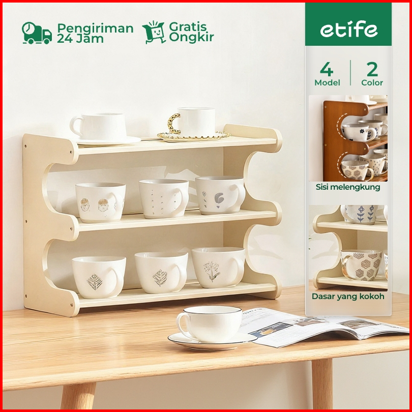 E-tife Rak Kayu Aesthetic Rak Susun Minimalis Rak Bumbu Dapur Rak Serbaguna Rak Meja Kecil Multifungsi