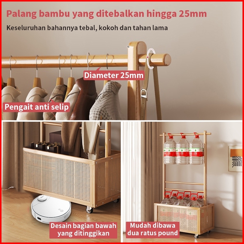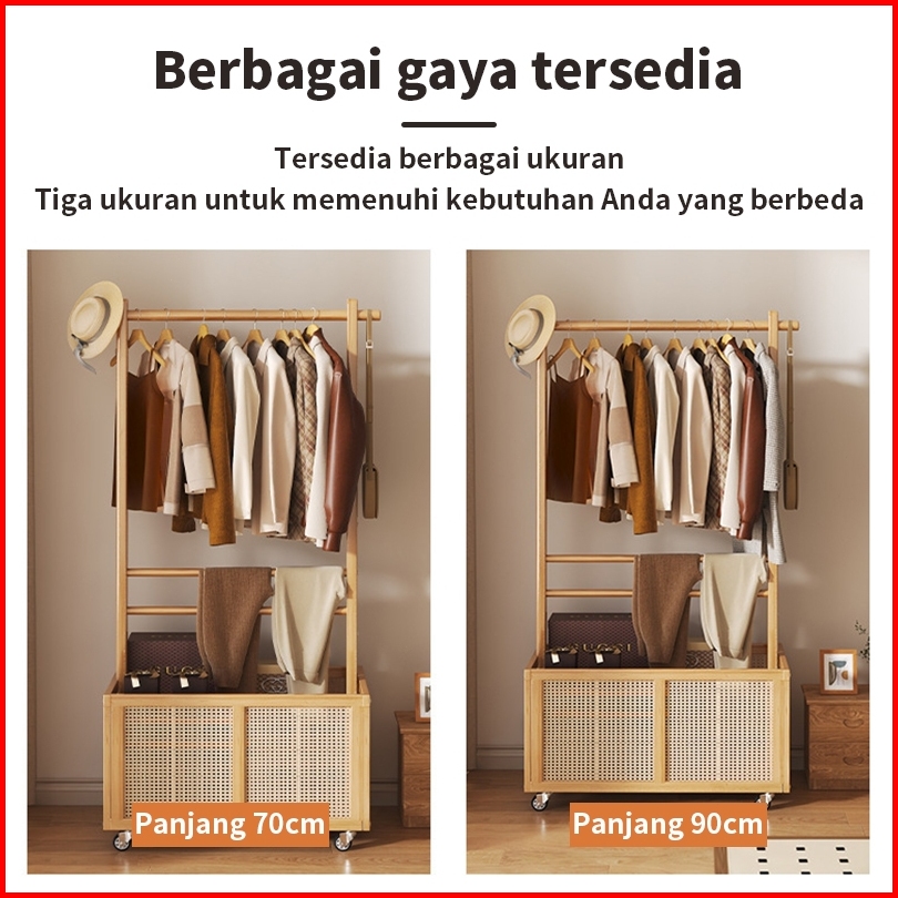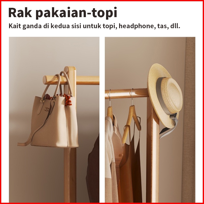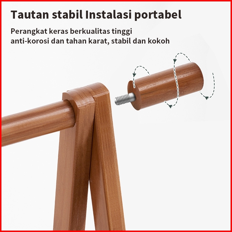 E-tife Rak Gantungan Baju Kayu Berdiri Stand Hanger Kayu Lemari Pakaian Minimalis 165cm Rak Baju Gantung