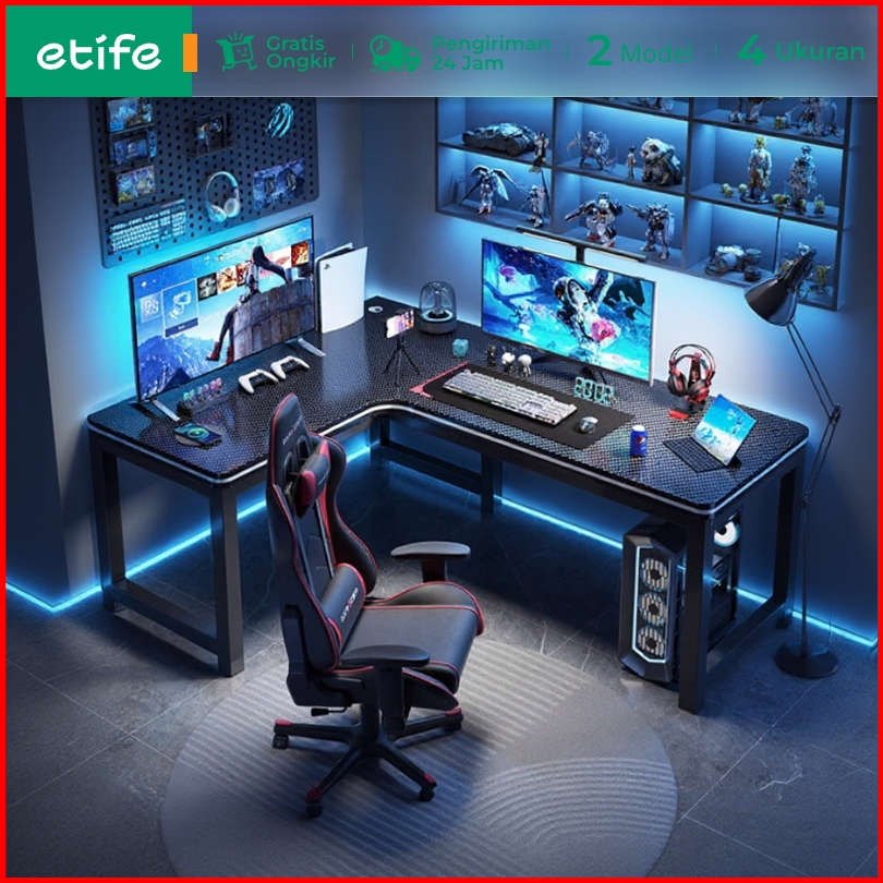 E-tife Meja Komputer Minimalis L Meja Gaming L Shaped Meja Komputer Meja Kantor Meja Laptop