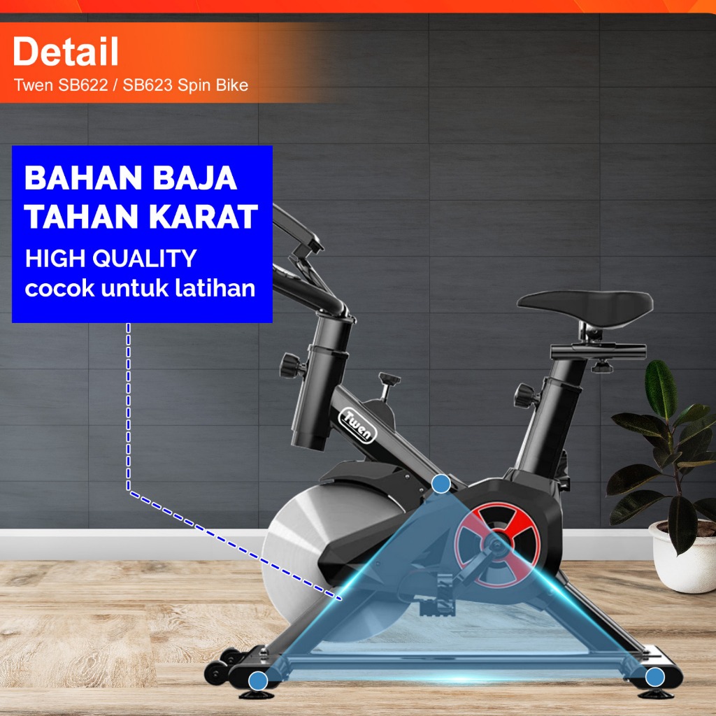 Twen SB622 Sepeda Statis Fitness Terapi Mini Spinning Fan Bike Alat Olahraga Gym Rumahan Statistik Bodymax Berwyn