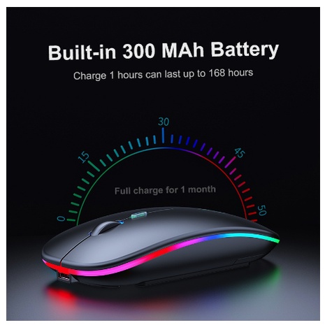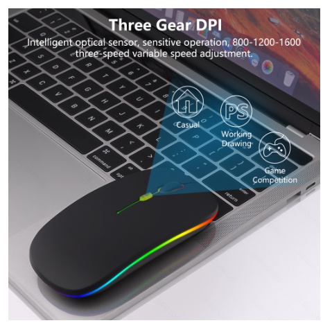 Mayy official id Mouse wireless+bluetooth mouse gaming silent click rechargeable RGB slim 2.4Ghz 1600DPI LED Backlit Isi