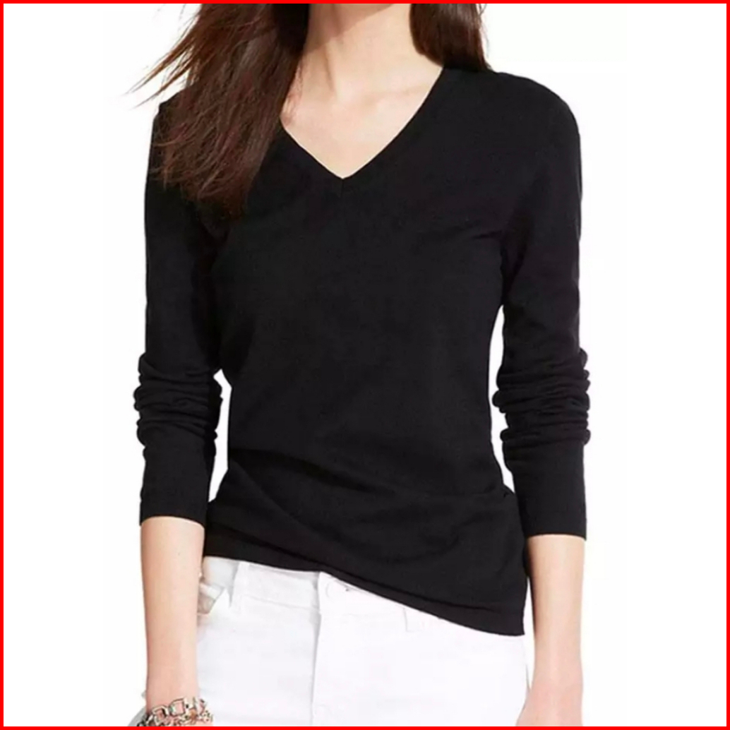 Kaos V Neck Kaos Kerah V Kaos Wanita Kaos Polos Kaos Lengan Panjang Kaos Berkerah V