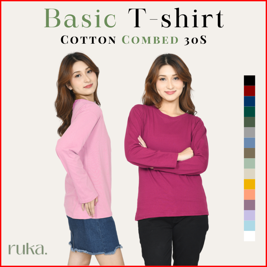 Kaos Polos Wanita Cotton Combed 30s Lengan Panjang Women Oneck Cotton Combed Long Sleeve Regular Fit