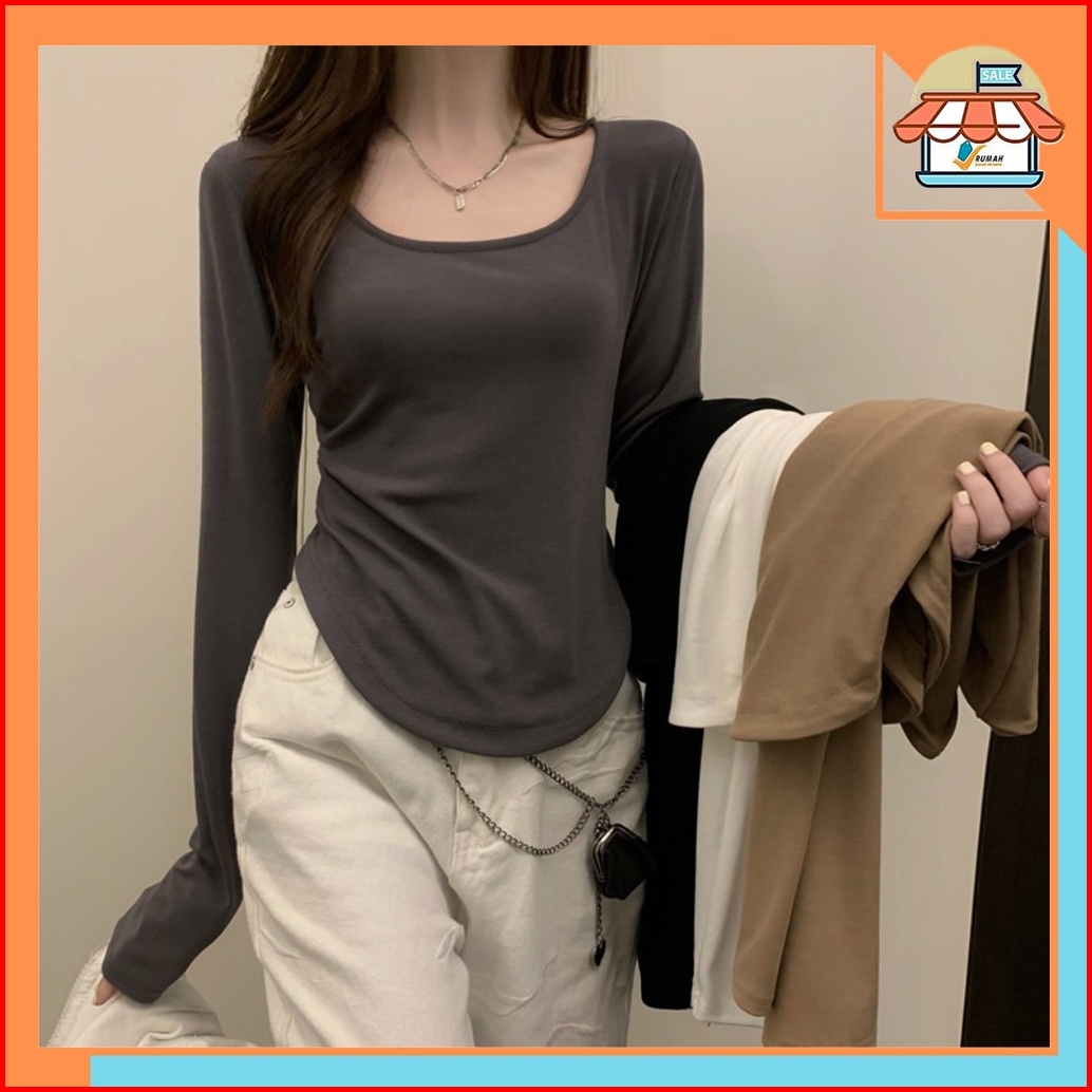 Rsb Bj256 Baju Wanita Fasion Lengan Panjang Kaos Polos Wanita Korea Spandek Long Sleeve