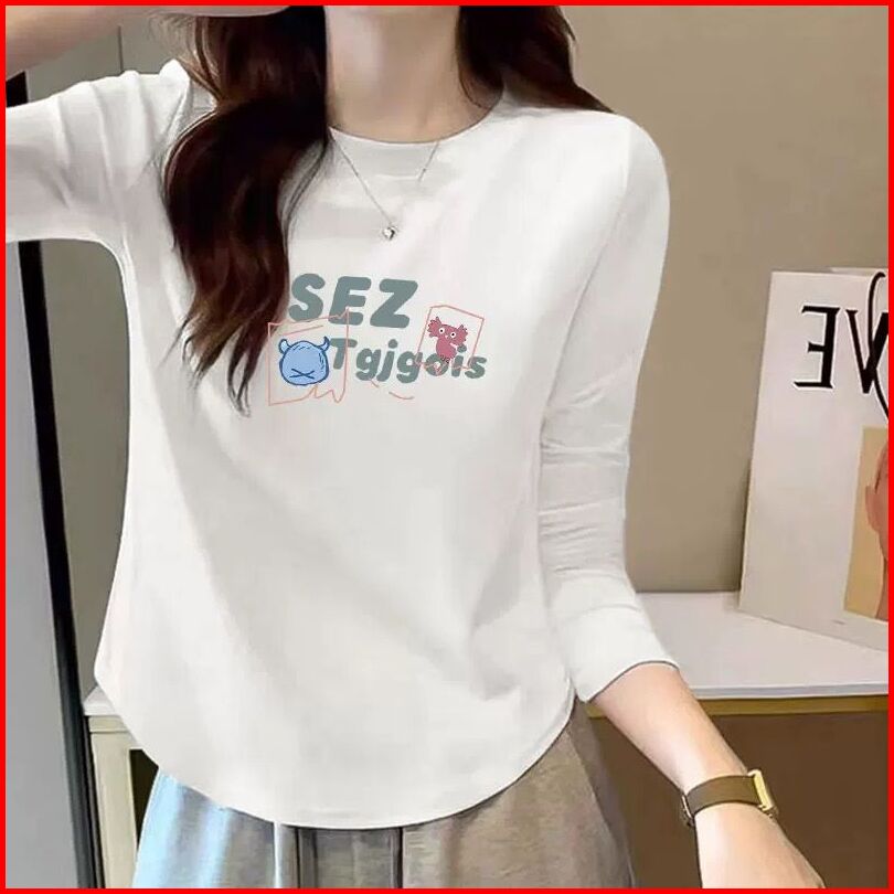 Baju Oblong Wanita Lengan Panjang Bahan Spandek Distro Printing Premiun Atasan Baju Kasual T-shirt