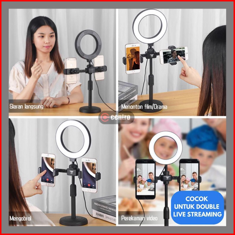 Tripod 28cm 2 Holder Hp Lampu Ringligth 16cm Stand Hp Selfie Vlogging Podcast Review Nonton
