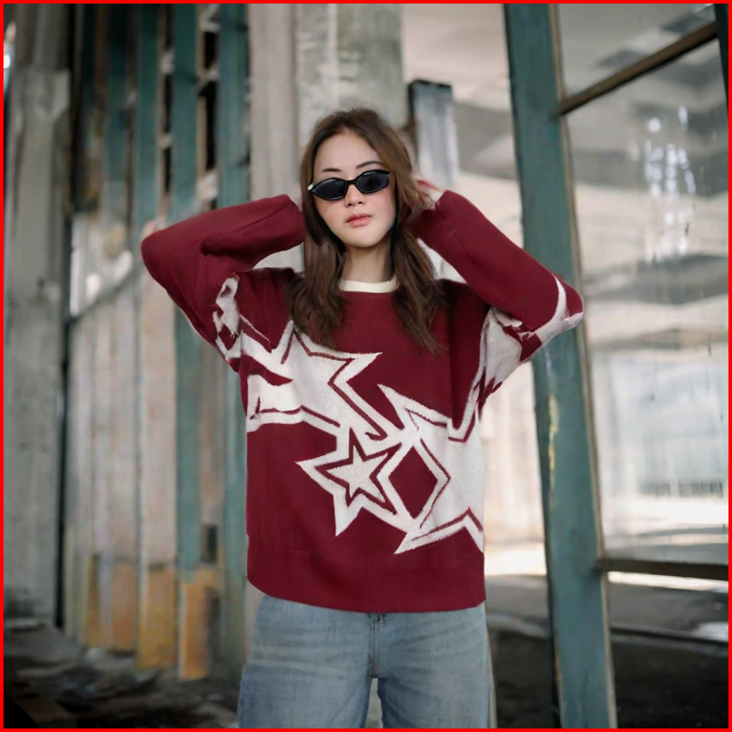 Sweater Rajut Wanita Motif Bintang Skena Best Seller