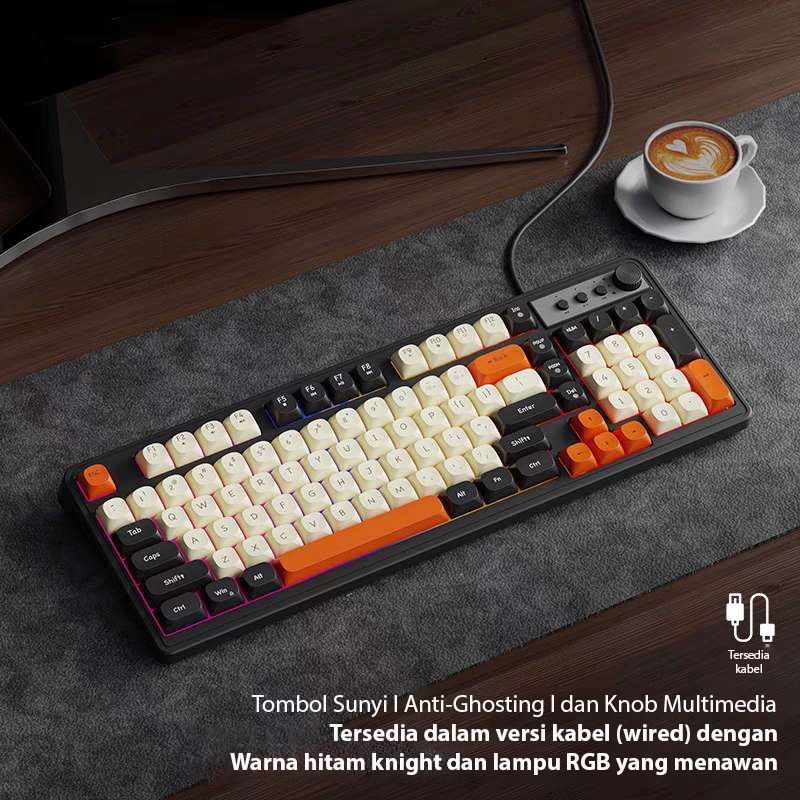【Xim PC】Set Keyboard K98 Gaming E-sports Jerman dengan Kabel, Switch Coklat, Senyap, Sensasi Mekanis