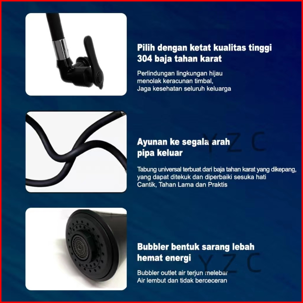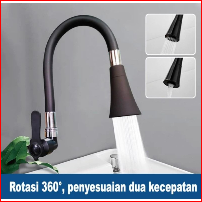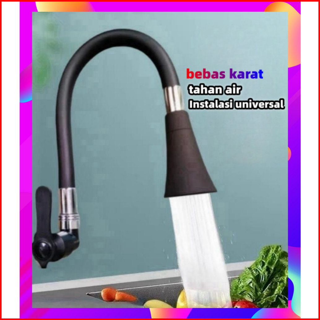 Kran Angsa Flexible Karet Hitam Keran Cuci Piring Lentur Kepala Terompet Keran Cuci Piring Kran Dapur Kran Wastafel