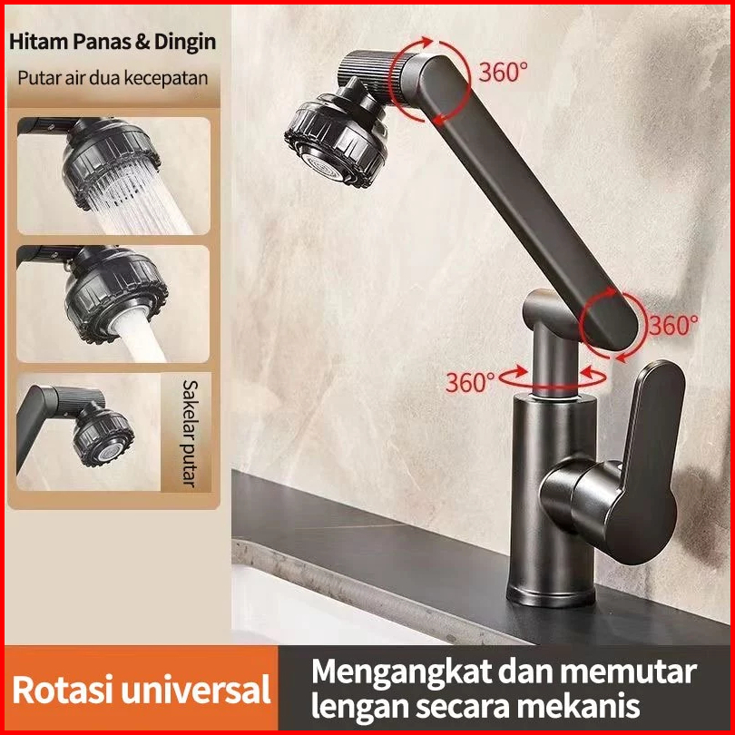 Sus304 Keran Putar 360 Derajat Keran Air Panas Dingin Keran 2 Jenis Mode Air Cerat Kran Wastafel Cuci Piring