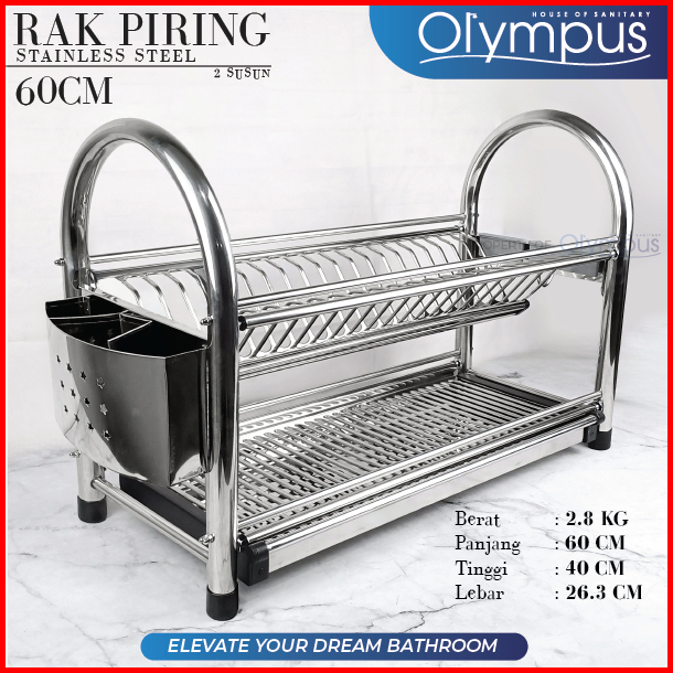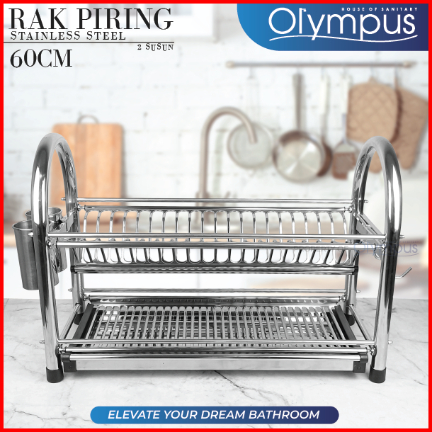 Rak Piring Stainless Steel Multifungsi 50 60cm Peniris Tempat Sendok Pisau 2 Susun