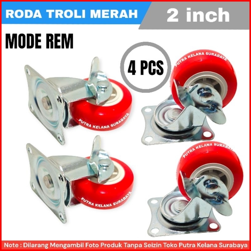 4 Pcs Roda 2 Inch Merah Rem 4pcs Roda Troli 2inch 4pcs Roda Merah 2 Dengan Rem