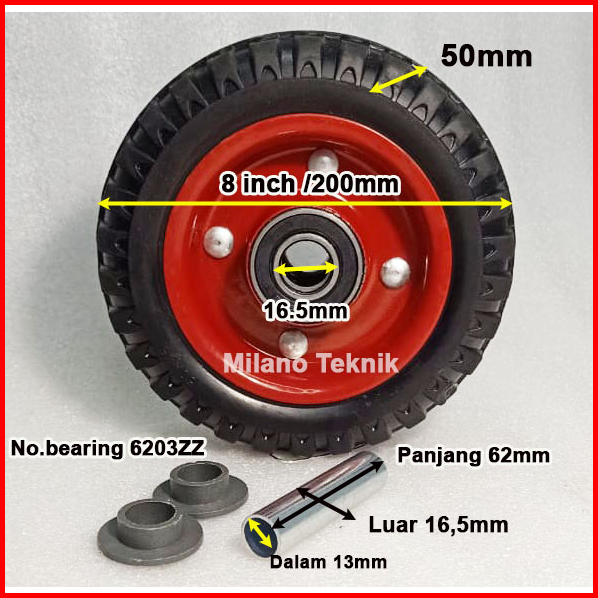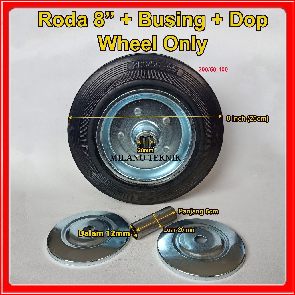 Roda Troli 8 Wheel Only Roda Karet Roda Gerobak Roda Kembang 8 Inchi Pcs
