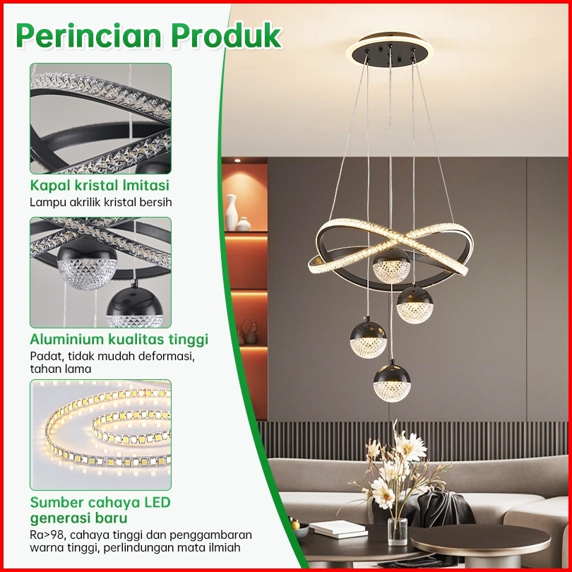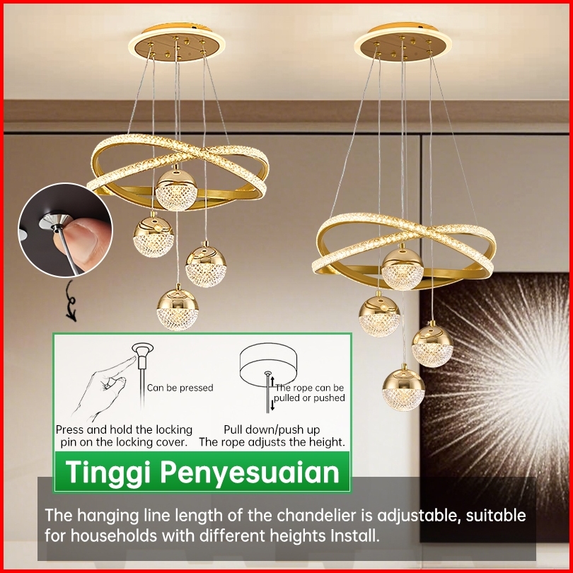 Gogeous Lampu Gantung Minimalis Kristal Lampu Hias Gantung Ruang Tamu Lampu Gantung Ruang Makan Dekoratif Mewah