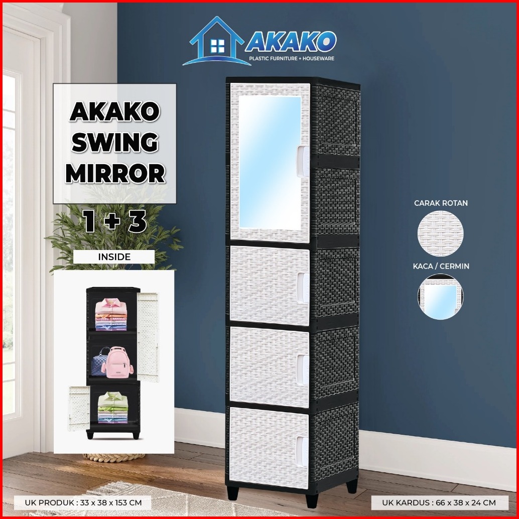 Akako - Lemari Pakaian Plastik 1 Pintu Full Rak Kaca Swing Mirror - Kode Swing Mirror