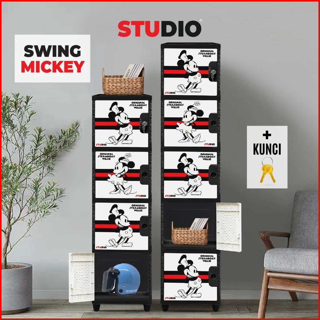 Studio - Lemari Pakaian Plastik Jumbo Swing Mickey Mouse 1 Pintu Kunci Printing Susun 2 3 4 5
