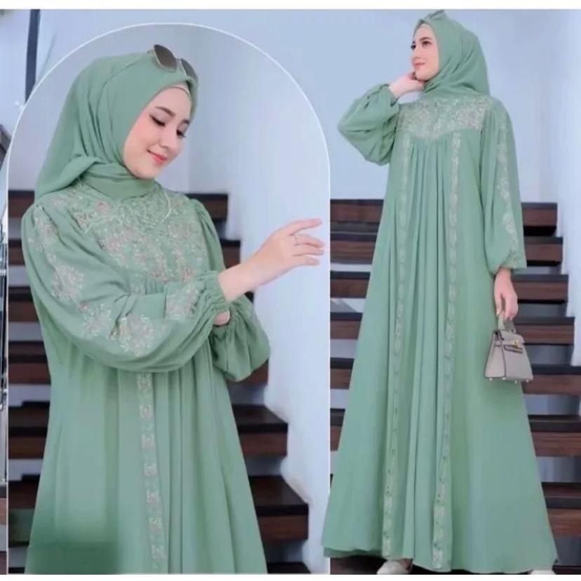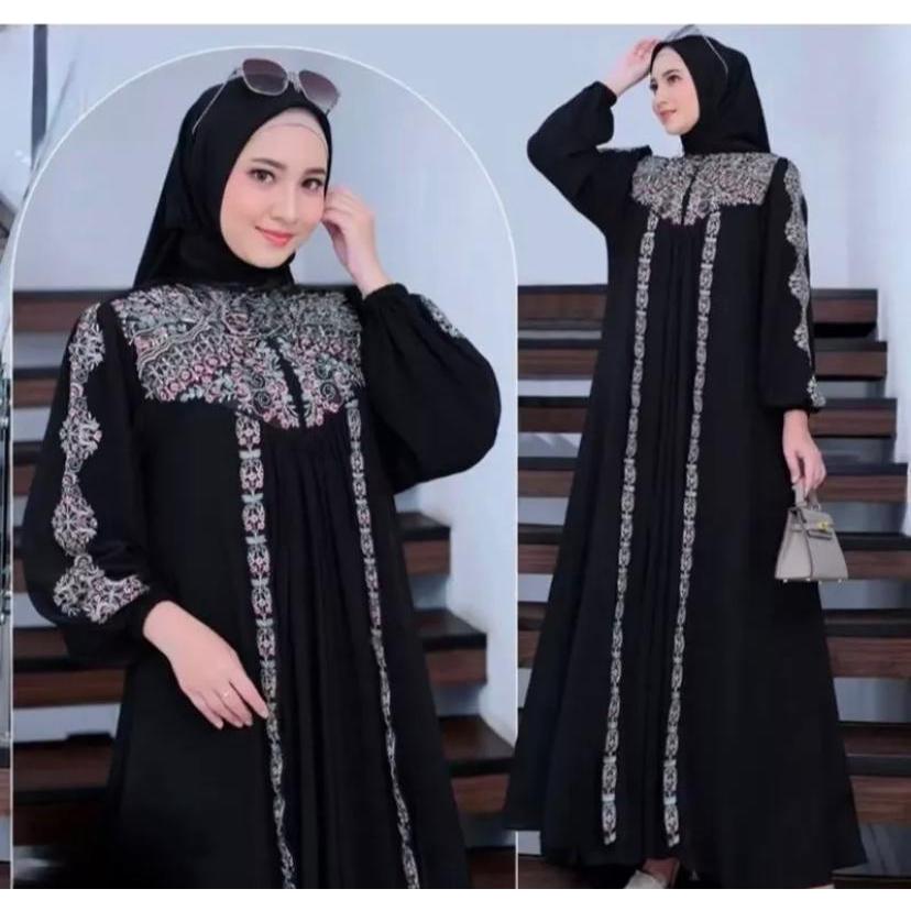 alesha fashion batari dress kekinian mewah ceruti babydoll aplikasi bordir cantik wanita muslim remaja gamis kondangan B