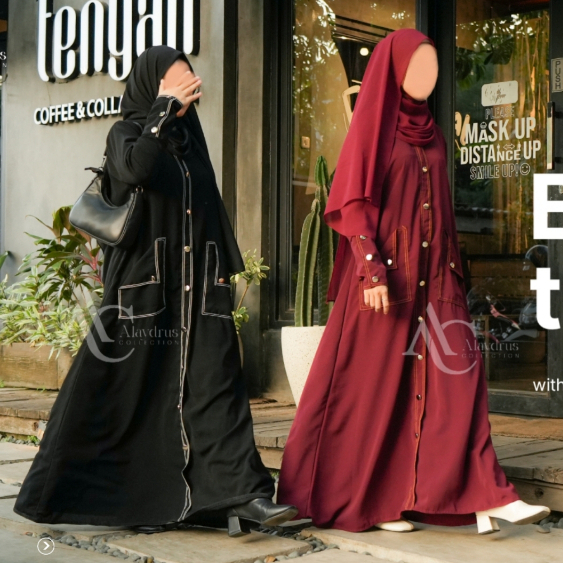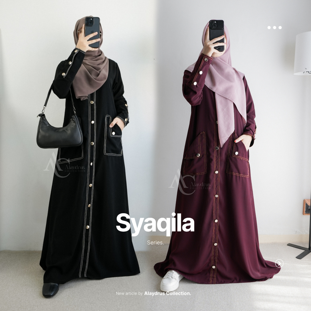 Alaydrus Collection Syaqila Abaya Hitam Turkey Gamis Syari Muslimah Bahan Jetblack Hitam Dress Saku